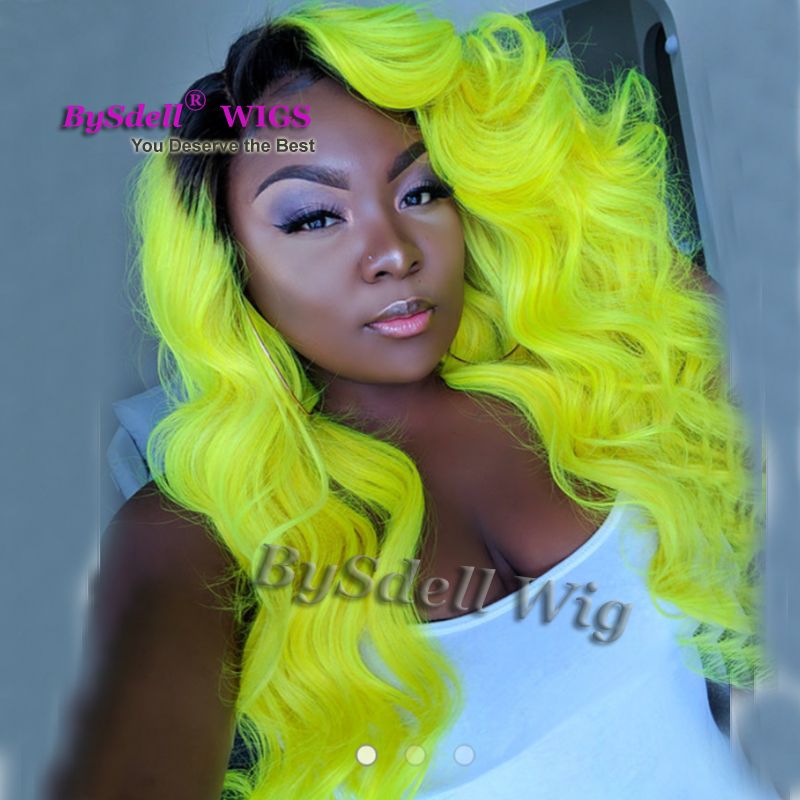Loud and lustrous lace frontal wig featuring a stunning multi coloured blend of green, yellow, pink and blue tones colored lace front wigs. Pink, blonde, blue, red, green, pure color or ombre color dark root hair.